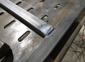 Варить начинаем сначала прихватками, затем, после контрольной проверки и замера, накладываем ровные и надёжные швы во всю длину стыка деталей.
