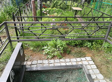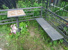 Затем мы красим оградку, выставляем по уровню памятник, дополнительно окрашиваем находящиеся на участке лавочку и столик. Вот как выглядело место захоронения на момент сдачи объекта.